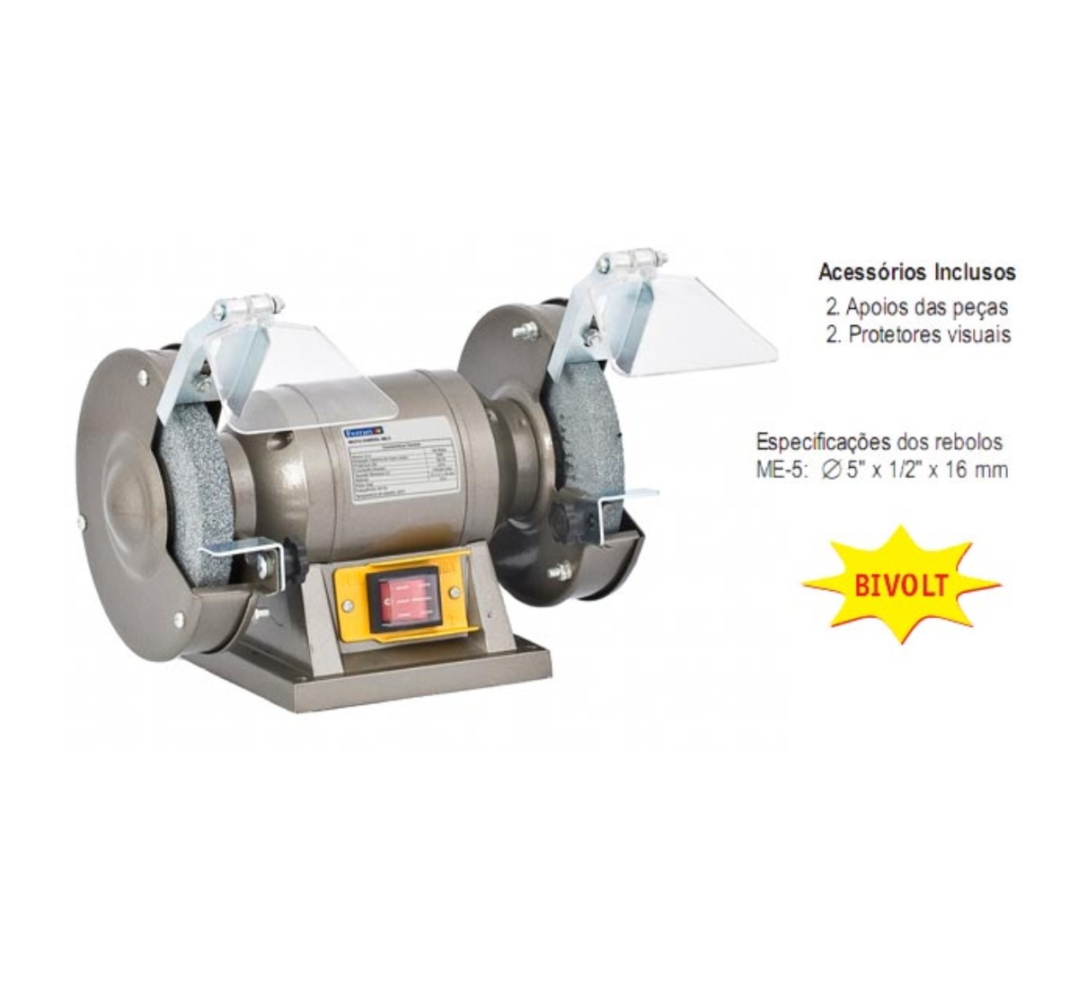 Moto Esmeril Bancada ME-5" c/ protecao visual Bivolt Ferrari Caracol